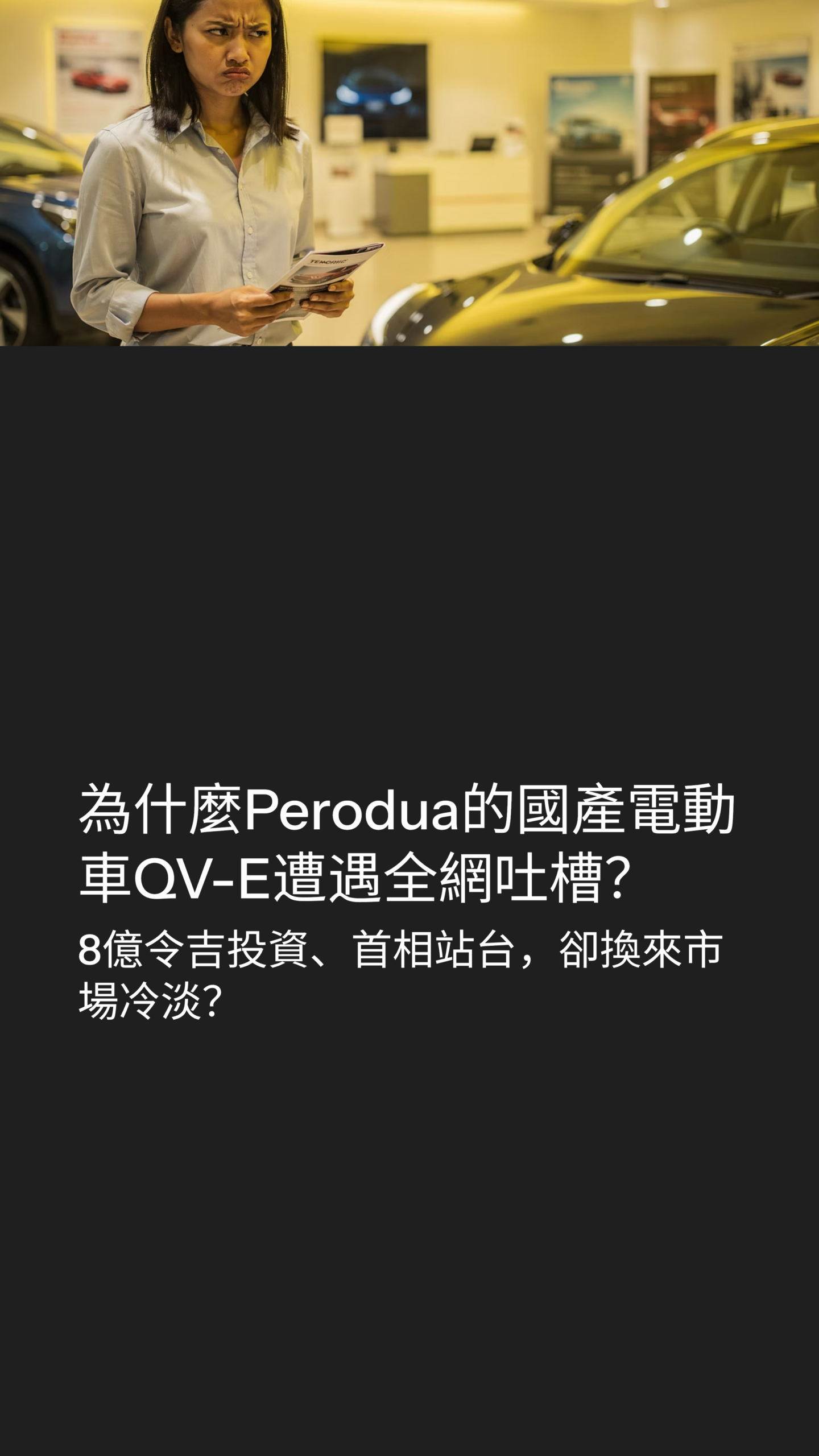 如果要在馬來西亞找一個「國民品牌」,Perodua(第二國產車)認第二,沒人敢認第一。幾十年來,Myvi、Axia 這些車款幾乎就是「可靠」和「性價比」的代名詞 。就在幾天前,2025 年 12 月 1 日,Perodua 迎來了它的歷史性時刻。他們砸了 8 億令吉的研發資金,正式發布了第一款本土研發的純電動車——QV-E 。這場發布會排場非常大,首相拿督斯里安華親自站台,這不僅僅是一輛車,它還背負著國家《2030年新工業總體規劃》NIMP 2030 的脫碳使命,是妥妥的「國家任務」 。按理說,這應該是全網歡騰、訂單爆滿的時刻。但這幾天我們看到的市場反應是什麼?冷淡,甚至是有點憤怒。網上的評論區不是在酸,就是在為什麼?是因為大家不愛國了嗎?還是 Perodua 變了?