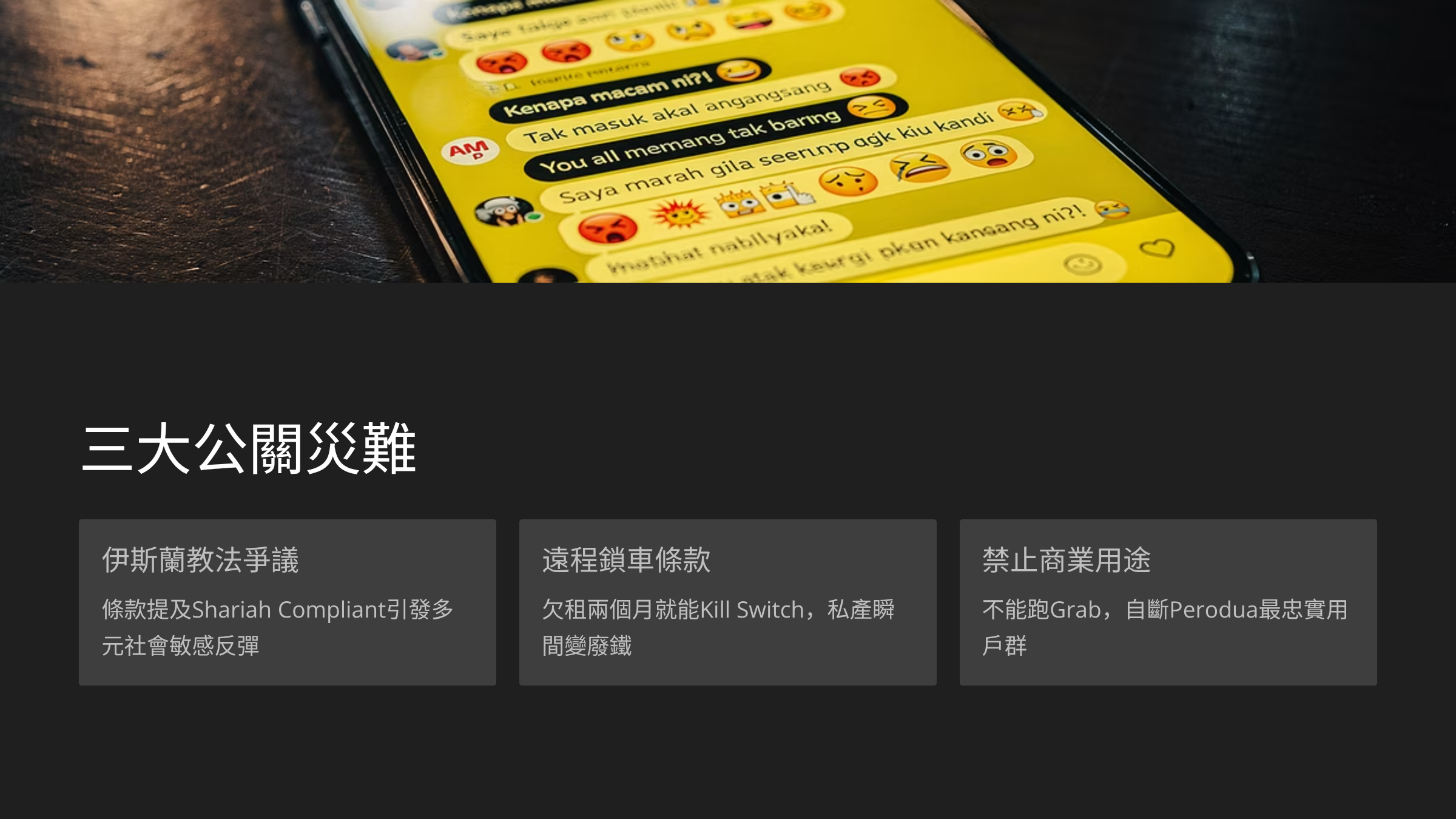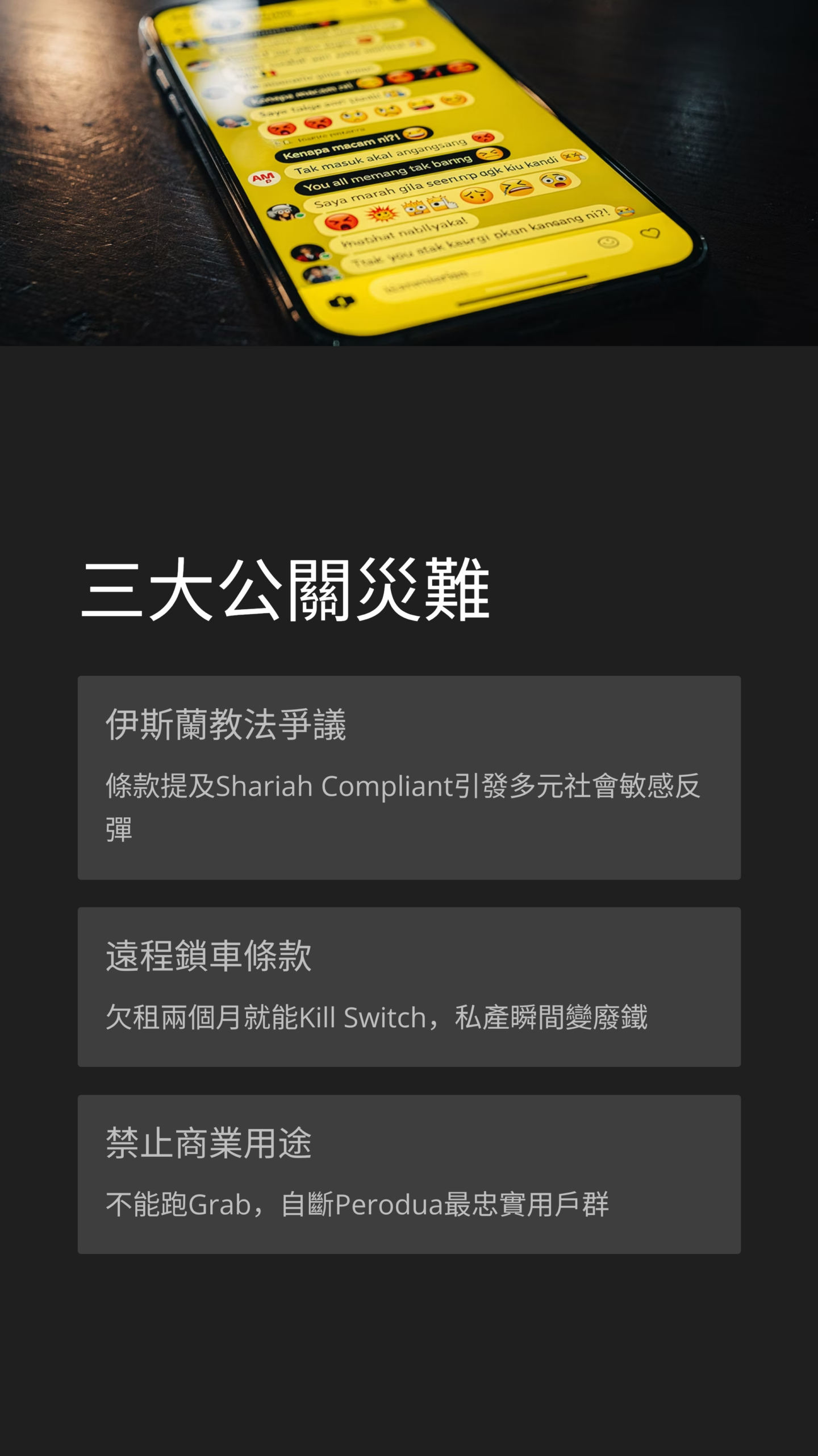 除了錢的問題,Perodua 這次在「文化」和「權利」這兩個敏感點上,也踩了大雷。首先是那個讓人哭笑不得的公關災難。在最早的條款裡,居然出現了車輛使用必須符合「伊斯蘭教法」(Shariah Compliant)的字眼 。雖然官方後來緊急澄清說,這只是指融資結構沒有利息,不是限制你怎麼用車 。但網路上已經炸鍋了,大家開始做梗圖,笑說「這車會不會自動導航去回教堂?」或者「不能載酒」的嘲笑 。