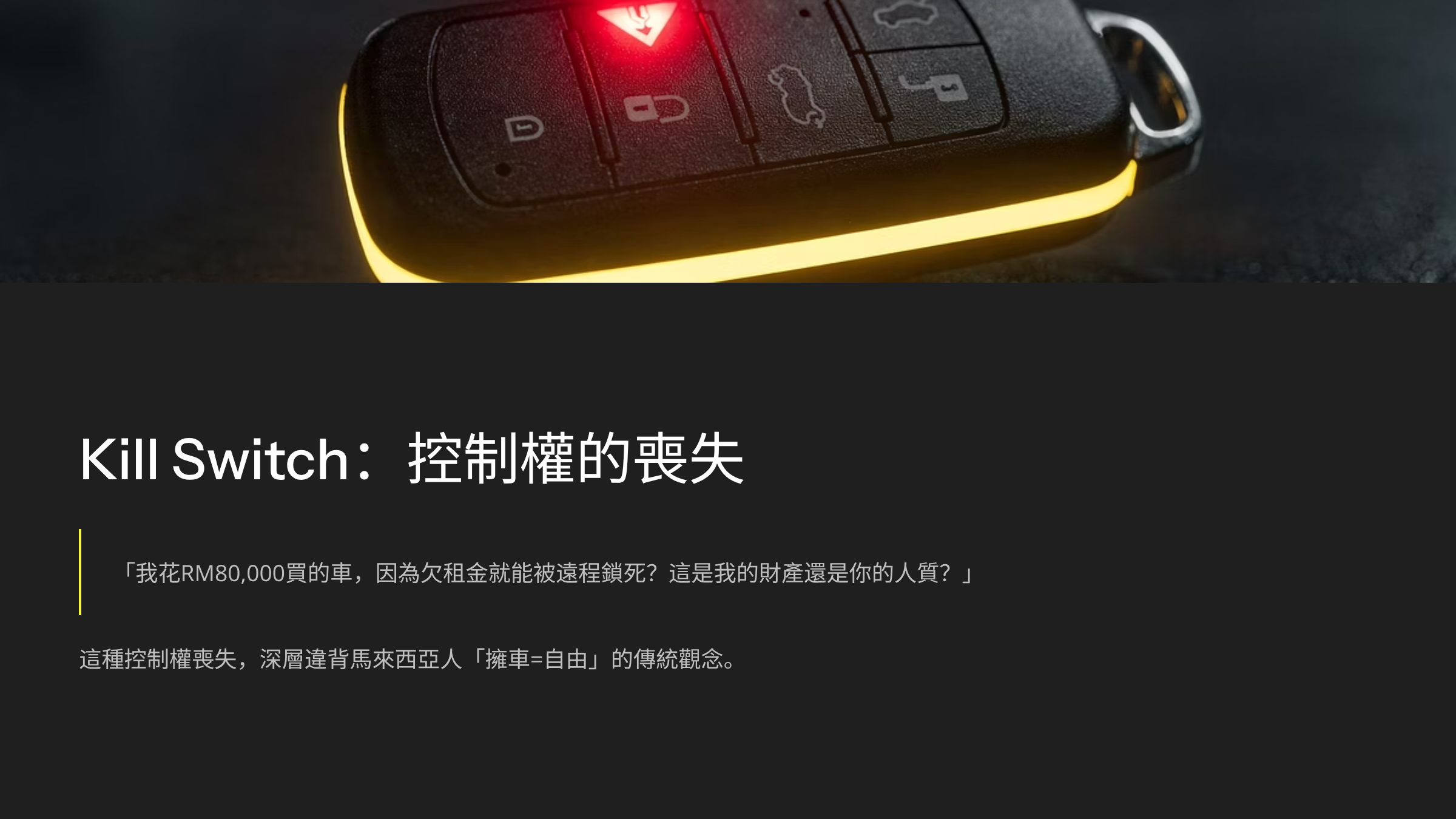 但比起這個,我更在意的是另一個條款——Kill Switch-遠程鎖車。